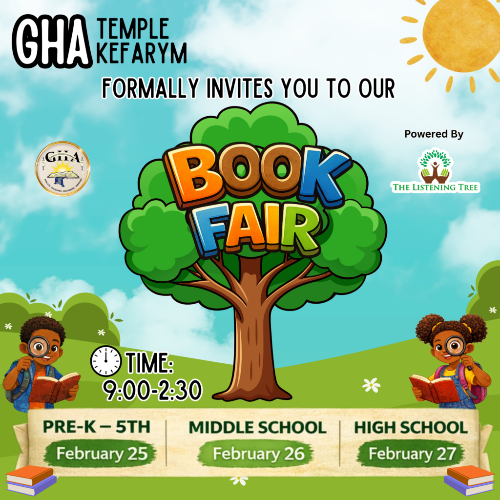 Join us in person or virtually for the Goshen Hebrew Academy at Temple Kefarym Book Fair at The Listening Tree!